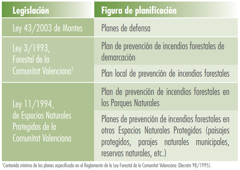 En la Comunitat Valenciana la planificación de prevención de incendios forestales, queda